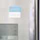 Un imán retro de lavavajillas retro sencillo, minimalista, de color azul pastel y blanco sucio/limpio.