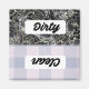 Lavavajillas Limpiar/Sucio imán de Rótulo. Diseño de estilo cabaña con patrón de verificación azul claro y crema para el lado limpio y negro, azul y blanco para el lado sucio. Grandes letras negras que son fáciles de leer con un divertido tipo de letra, muy rústico y encantador.