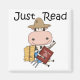 Sólo lee camisetas, caramelos, tazas, tarjetas, pegatinas, botones, imanes, ratones, ratones, ratones, revistas, agujeros y otros artículos de temas de lectura y regalos que promueven la lectura de una manera linda! ¡Una vaca con un gorra de paja y una horquilla descansa sobre un bale de heno con un libro!