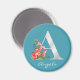 Imán Letra A | Nombre | Monograma metálico blanco flora
