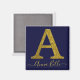 Monograma de estilo purpurina con simulación de oro sobre azul sólido de medianoche. Personaliza tu nombre o mensaje con el tipo de letra amarillo dorado. Utilice más personalizar para cambiar el color de fondo a su elección.