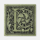 Letra decorativa encantadora L tipografía de estilo de monograma inicial en forma de tipografía en forma de primera letra en color negro sobre fondo de libro verde de aguacate vintage con hojas de Ginkgo blanco.