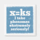 Un ilustracion gracioso para cualquiera que enseñe o aprenda el inglés a través de la fonía. En la mayoría de los fundas, la letra grafieme X hace el sonido KS y por lo tanto no es un fonema. El diseño gracioso dice que me tomo los fenómenos extremadamente en serio. La palabra extremadamente se escribe incorrectamente con el KS en lugar de la X.