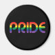 Este colorido diseño arcoiris presenta la palabra Orgullo.