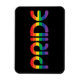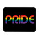 Este colorido diseño arcoiris presenta la palabra Orgullo.