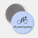 Este es un divertido imán para un ciclista entusiasta, que representa un pictograma de un solo ciclista y el eslogan de la etiqueta #LoveCycling. El fondo es azul claro y la "V" del amor se ha transformado en un corazón rojo.