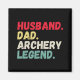 Tiene tres títulos: marido, papá, leyenda del tiro con arco. En una fuente retro angustiada en blanco y azul retro rojo un imán colorido divertido es una gran manera de mostrar sus logros. Un regalo especial para un padre y un marido que aman el tiro con arco, los blancos y la familia.