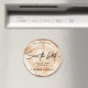 Personalice esta boda única Guardar los imanes del círculo de fechas. Cuenta con un disco de corte de grano de madera impreso, perfecto para su boda rústico. Leyenda manual, escritura moderna para las palabras "guardar la fecha". Personalizar los nombres, la fecha y la ubicación.