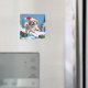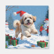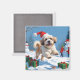 Imán Lhasa Apso postulando en Nieve con Gorra Navidad