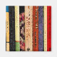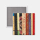 Este imán cuenta con una estantería de libros coloridos. Forman una interesante composición geométrica vertical abstracta.