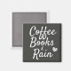¿Estás buscando una idea de regalo para Navidades lindos y baratos para todos los amantes del libro, del café, de la lluvia en la familia? ¿Qué tal este lindo imán de frigorífico de color gris que dice 'Libros de café y lluvia' impreso en letras cursivas de colores blancos geniales al lado de un lindo corazón de plata? ¡Es perfecto!