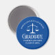 Este imán de graduación de la escuela de Derecho azul personalizado presenta tipografía blanca para una clase de graduados de 2024. Personalizar con tu año de graduación bajo la balanza de la justicia por un gran regalo personalizado de abogado o abogado.