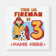 El ingeniero de bomberos de tercer cumpleaños tiene un tierno bombero, un perro manchado y una hidrante de fuego con el texto "Este bombero de lilo tiene 3 años".