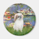 El Impresionante Claude Monet (1914) se adaptó para incluir un mentón japonés blanco y limón. Una de las muchas pinturas de nenúfares, esta tiene nenúfares rojos o rosas brillantes en el estanque. Se vendió en subasta en 2008 por más de 70 millones.