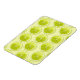 Un patrón de rodajas de cal fresca y jugosa en tonos vivos y vivos de verde limón, con una textura acuarela que le da ese aspecto recién cortado. Se colocan sobre un fondo amarillo claro / verde para una apariencia luminosa y veraniega.