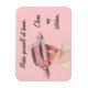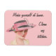 Este divertido imán presenta una imagen vintage de una mujer en un gorra elegante. El texto del personalizable dice: "Hazte sentir como en casa. Limpia mi cocina". El texto y el color de fondo se pueden personalizar para que se ajusten a sus necesidades.