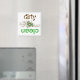El imán del lavavajillas hace que sea fácil para todos en la casa saber si los platos están limpios o sucios. Con texto verde y marrón sobre fondo blanco con círculos coordinadores, giros y hojas sobre vides. Una gran idea de regalo.