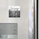 Magnet con una fotografía en blanco y negro del perfil de la ciudad de Chicago. Puedes personalizar la frase de la ciudad de Chicago.