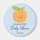 Una pequeña cubata está en el camino de la ducha para bebés con un adorable naranja de clementina sobre un fondo azul claro. Visita nuestra tienda para ver nuestra adorable colección de diseño.