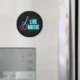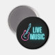 Fun kitchen magnet for musicians and music lovers features "Live Music" aqua neon text with a pink and aqua guitar outline.