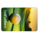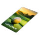 Este imán flexible se muestra con una impresión fotográfica de una pelota de golf en exhibición para lo mejor del golf.