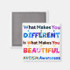 Cita inspiradora de "Lo que te hace diferente es lo que te hace BELLO" con puzzles de autismo únicos y hermosos, y flores para apoyar y defender la conciencia del autismo.