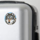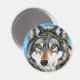 Una pintura acrílica de un lobo gris sobre un fondo azul.