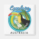 Logo de exploración de la isla de Fraser Australia con un pájaro Toucan.