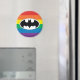 Orgullo de DC | Logo icónico de Batman con capas de colores arcoiris en su interior.