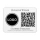Logotipo redondo Código QR Empresa Empresa Imán flexible. Moderno, sencillo, elegante imán de coches con el logotipo de empresa/empresa personalizado y código QR, para llevar a los clientes a su sitio web, reserva de citas, portafolio, promociones, esta es una herramienta promocional y de marketing para difundir el mundo de su negocio. De empresa a pequeña empresa, todos pueden beneficiarse de este gran imán de coches. Personalizar de negocios / nombre personal, profesión o servicio y eslogan / slogan, información de contacto, o cualquier texto adicional.