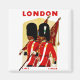 Poster de viajes vintage para Londres mostrando a los Guardias Reales paseando los colores.