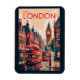 Diseño de viajes vectoriales retro de Londres. Desde el Palacio de Buckingham y la Torre de Londres hasta los espectáculos del río Támesis y del West End, Londres ofrece una dinámica mezcla de tradición y cultura moderna.