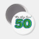 Un gran número 50 en un texto verde y azul fresco aparece en nuestras camisetas de 5 a 0 cumpleaños, tazas, botones y otros equipos de 50 años. ¡Es el gran!