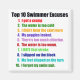 Aquí están las diez mejores excusas para no entrenar o nadar lo suficientemente fuerte. Excelente regalo para su nadador o entrenador de natación. ¡El entrenador de natación ha escuchado a todos!