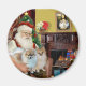 Santa en casa con sus dos Pomeranianos, relajándose frente a una acogedora chimenea antes de la gran noche. (Noten a Mona Lisa sobre el mantel.)