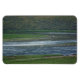 Fotografía de un río en el Parque Nacional Yellowstone, con varios grupos de géses de Canadá a lo largo de su costa y algunos pelícanos norteamericanos descansando en medio del río en algunos expuestos . Derechos reservados ©Kimberly J Tilley.