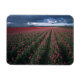 Imán Los tulipanes rosados y rojos brillan bajo la oscu