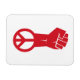 Este diseño presenta un puño rojo elevado unido a un símbolo de paz.