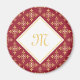 Un imán de diseño floral de cuatro puntos de color rojo y oro de lujo que se puede personalizar añadiendo su monograma. Este elegante diseño monocasco vintage de damasco con forma monogramada le permitirá sacar el máximo partido a su sofisticado lado. Imagen plana impresa, no metálica.
