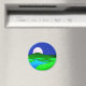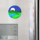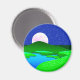 Magnet en ilustracion circular de una luna llena levantándose sobre las verdes colinas a orillas de un lago, con un cielo azul estrellado a medianoche