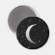 Plata, aspecto metálico, luna creciente en un fondo estrellado de cielo nocturno