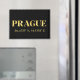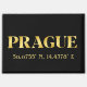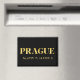 Lux fridge magnet features Prague, Czech Republic latitude and longitude map coordinates in gold fonts on black background.