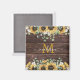 Agrega encanto rústico a tu espacio con este elegante imán de madera marrón, que presenta girasoles amarillos, hojas de eucalipto y un monograma personalizado: un gran acento floral de verano o regalo de boda.