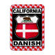 Magnet Americano Danés de California. Diseño danés de California, en el estilo de un genial cartel de ruta estadounidense. El texto California Danish está en la parte superior e inferior, con la bandera del estado de California y la bandera de Dinamarca dentro del símbolo de la ruta. ¡Excelente para californianos de ascendencia danesa, y para expatriados en la República de California!