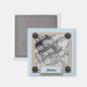Este elegante imán de botones y corchetes azules, con un motivo de reserva de recortes, es la manera perfecta de mostrar fotos de tu precioso recién nacido - ¡o nieto!