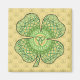 Este clásico trébol de cuatro hojas sobrepone un diseño de círculo concéntrico con capas de tejas celtas en múltiples tonalidades de verde con un poco de naranja para el acento.