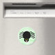 Una espeluznante araña negra con ocho piernas peludas, ojos amarillos con grandes pupilas negras y la boca abierta mostrando sus colmillos.