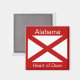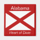 Una auténtica imagen de calidad superior de la bandera de Alabama puesta entre el nombre del estado y el apodo sobre un fondo de color de la bandera.