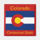Una auténtica imagen de primera calidad de la bandera de Colorado entre el nombre del estado y el apodo sobre un fondo de color de la bandera.