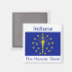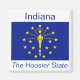 Una auténtica imagen de calidad superior de la bandera de Indiana puesta entre el nombre del estado y el apodo sobre un fondo de color de la bandera.